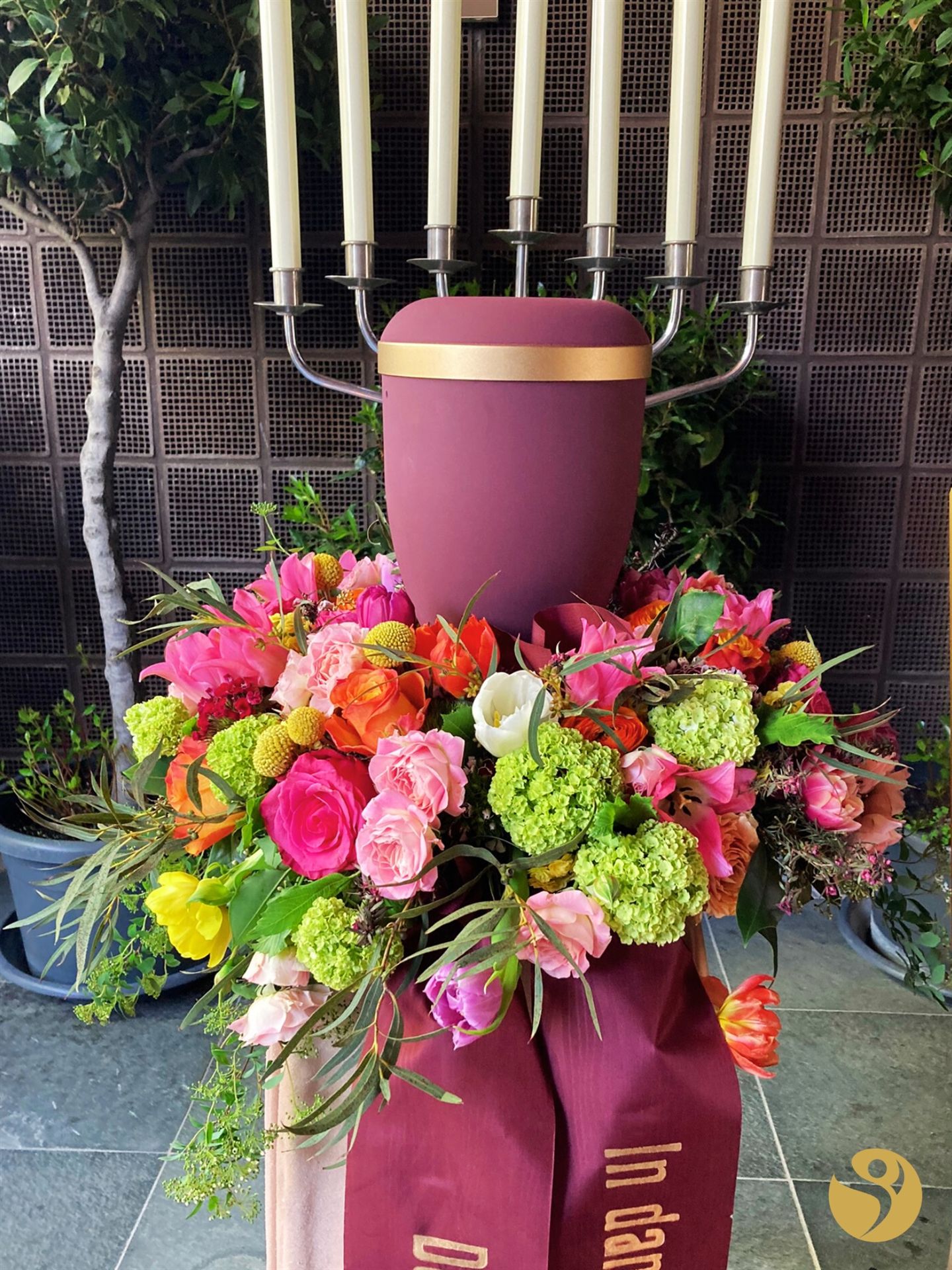 Die Urne kann in einem Kranz gebettet werden.